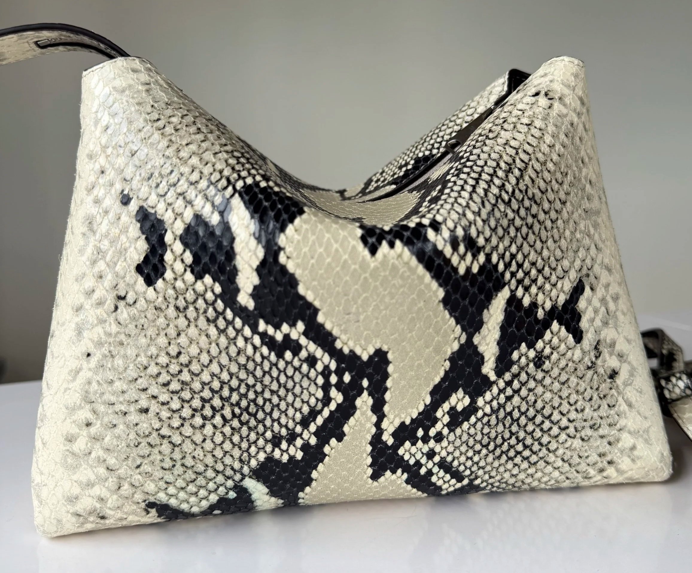 The Khaite Lina in python-embossed leather strikes a balance between texture and practicality.