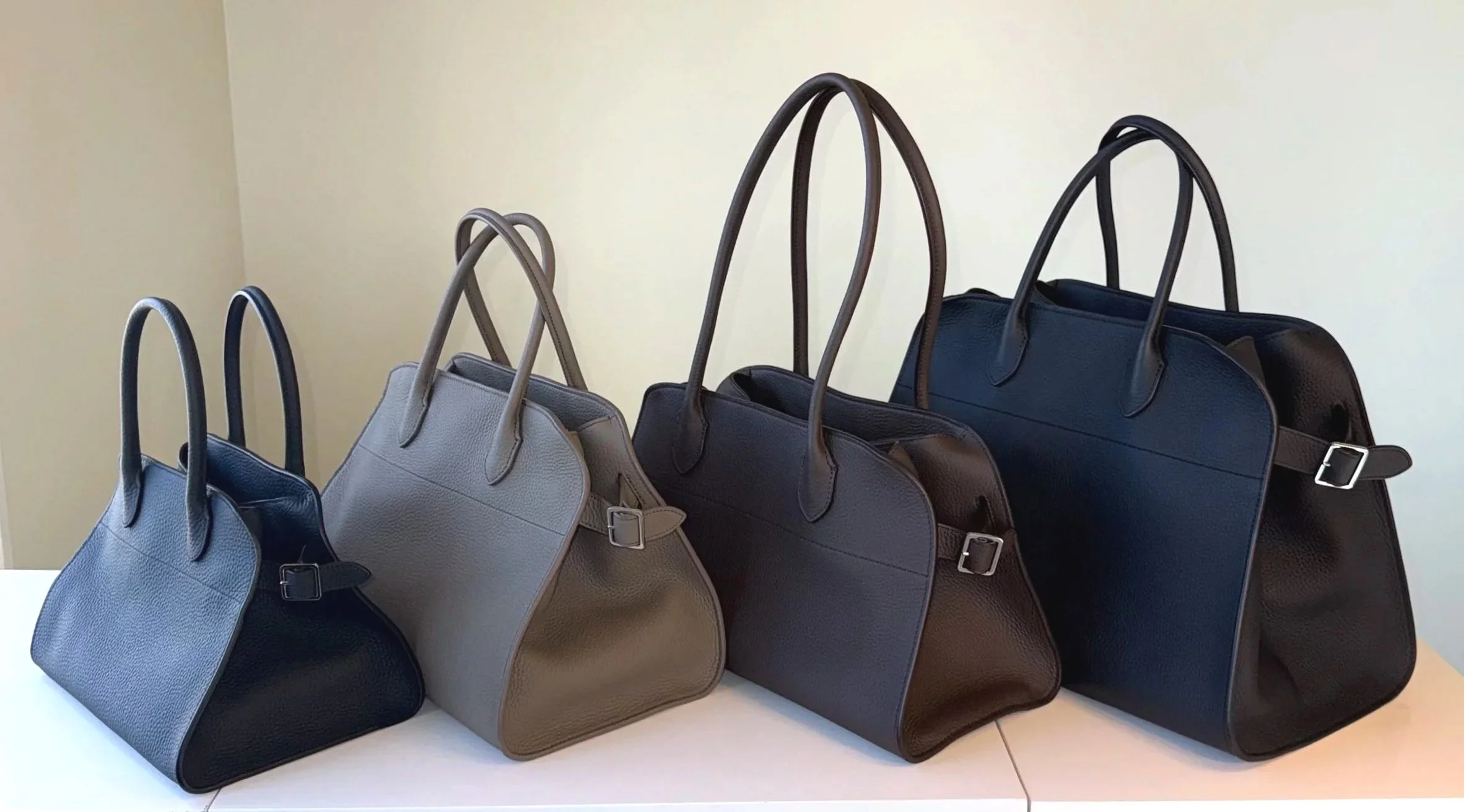 As one of The Row’s defining silhouettes, the Margaux carries a lasting presence within the brand’s lineup. The design remains consistent across sizes, while changes in proportion shape how each version integrates into daily life.